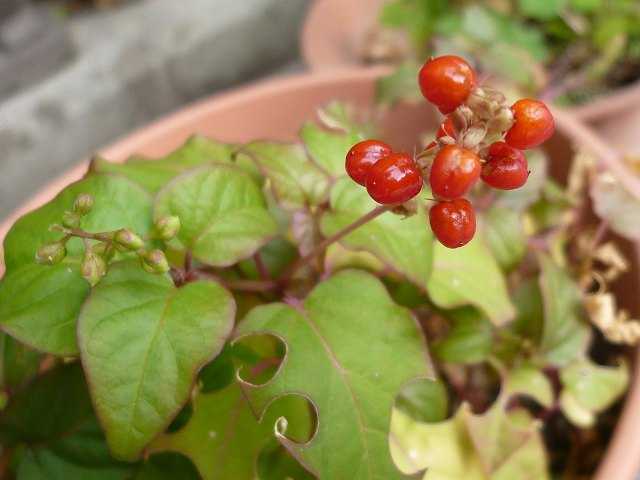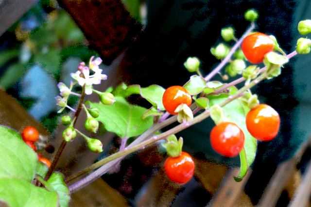 ジュズサンゴ(数珠珊瑚) 学名:Rivina humilis 英名:pigeonberry, blood berry, bloodberry 別名:リビナ 分類:ヤマゴボウ科リビナ属