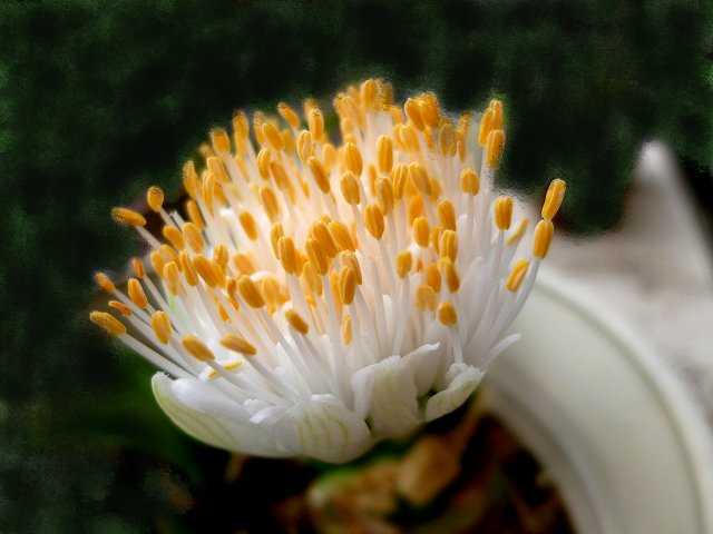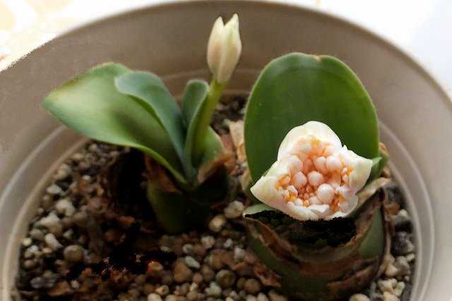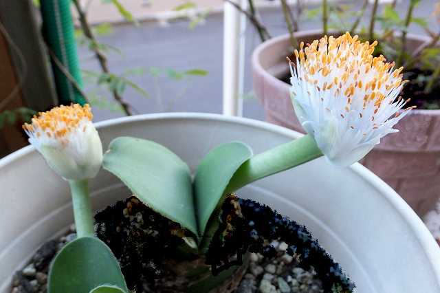 マユハケオモト(眉刷毛万年青) 学名:Haemanthus albiflos 分類:ヒガンバナ科ハエマンサス属