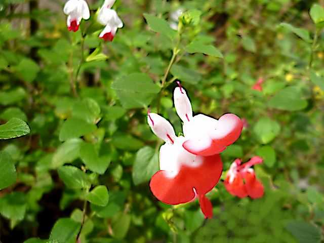 チェリーセージ・ホットリップス 学名:Salvia microphylla 'Hot Lips' 別名:チェリーセージ・ホットリップス、サルビア・ミクロフィラ・ホットリップス、 ベビーセージ 分類:シソ科アキギリ属(サルビア属)