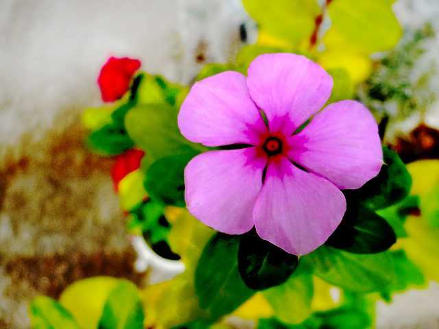 ニチニチソウ(日々草) 学名:Catharanthus roseus 英名:Madagascar periwinkle 別名:ビンカ 分類:キョウチクトウ科カタランサス属