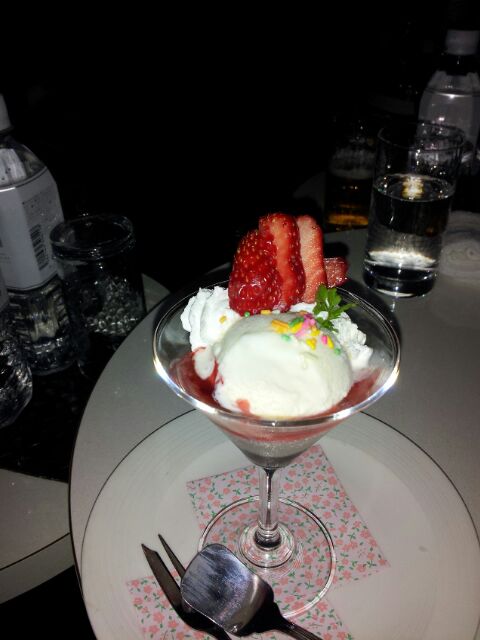 他店に遊びに行きました。 お店からの可愛いサービス。 いつも、お酒を飲んでる時に アイスクリーム等 いただかないのですが… 美味しかったわ♪