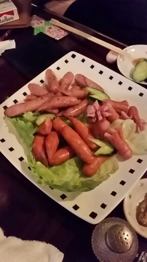 スタッフが作った…… ウィンナー盛り合わせ? (笑) 三種盛りですかねぇ。 可愛いから ま いっか。
