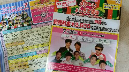 7月26日 日曜日 チケットを頂いたので、初めてのよしもと体験をいたしました。 会場が小さいので、すぐ近くで。