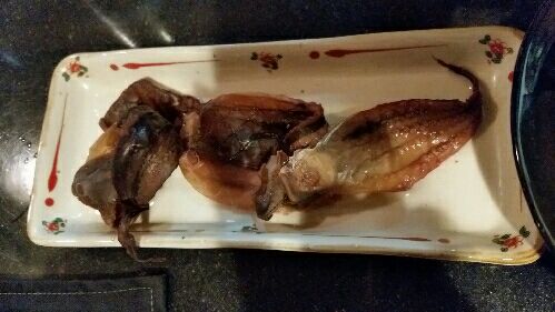 大宮のスナック ペーパームーンですよ。 キッチン女性が、広島のおみやげを出して下さいました。 うーん 何に見えますか? タコさんでーす!