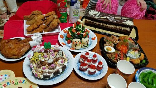 クリスマスパーティー 子供がデコレーションしたケーキ、美味しかったわ。