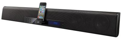→関連記事:液晶テレビにサブウーファーを繋ぐ一度このブログでも取り上げたが、我が家の場合、リビングの液晶テレビは、内蔵のスピーカーに、センターウーファーのみを追加して、映画や音楽番組を見るときだけ、センターウーファーをONにして使用している。なぜ、センターウーファーだけでいいのか?というと、まず、使っている液晶テレビが、フルレンジ(全音域用スピーカー)+ツイーター(高音域用スピーカー)の構成になっており、簡易スペアナで計測しても、高域はそれなりに出ており、それに比べて、圧倒的に120Hz以下の低音域が出ていないことが判明していたから、低音域のみを増強するスーパーウーファーを追加するだけで、シアターに近い気分が得られるだろう事が予想できたからだ。低音域は、高域に比べて音の指向性が低いため、ステレオである必要性はあまりない。なので、センターウーファーと呼ばれるスピーカーが一つあればよく、置く場所も必ずしも真ん中である必要性はないため、狭いリビングでも設置しやすい。さらには、たまたまだが、我が家の液晶テレビには、センタースピーカー専用出力端子まで用意されているため、他の端子を潰さなくても、センタースピーカーを接続できるという利点があった。そのため、ジャンクで手に入れたアイワのセンターウーファーを購入し、これまで使ってきたのだ。実際、超低音を補強するだけで、アクション映画やSF映画の迫力あるシーンの効果音や環境音の迫力が全然違ってくる。ただ、ニュースやバラエティでは、逆に人の声が聞きにくくなるため、普段はOFFにしている。時々しか使わないことを考えると、なかなかコストパフォーマンスがいいアップグレードの方法だと思っている。もちろん、もっといいスピーカーを付ければ、さらにいい音が出るのは分かるのだが、独立したスピーカーは、狭い我が家のリビングでは置き場所に困るし、子供が蹴飛ばして壊しかねない。テレビラックに一体化したオーディオシステムもあって、確かに邪魔にはならないが、高価な上に、故障して回復不能になったときに、ラック自体も廃棄する必要があることを考えると、手を出しにくい。なので、これ以上、スピーカーをアップグレードしたいとは思っていなかった。ただ、最近、この製品を見て、これなら買ってもいいかな、と思えたのでご紹介したい。ビクター、iPod/HDMI対応モデルなどバースピーカー3種 -TVスタンドをまたいで設置。SRS StudioSound HD搭載これは、テレビ台の上に置くステレオスピーカーで、ただ、ベタで置くのではなく、高さ調整可能な足がついていて、テレビのスタンドを跨いで置くことができるようになっているため、邪魔にならない。テレビのスタンド部分にリモコン受光部がある製品のために、この製品でいったんリモコン信号を受けて、それをテレビのリモコン受光部にスルーして出してくれる機能もあるのは親切だ。スピーカー部は、8cmのコーン型ウーファ×4と、2.5cmのバランスドーム型ツィータ×2を搭載した2ウェイ6スピーカー。小口径のスピーカーをパラレルに並べることで、振動板面積を確保し、低音域の音量を確保する、省スペースのAVスピーカーにはよくあるタイプだ。アンプはデジタルアンプで、最大出力は30W×2ch。SRS StudioSound HDも搭載し、フロントスピーカーだけで、擬似的なサラウンド再生もできる。スペックから見ると、100Hzぐらいまでの低音は出るようなので、ロック、JPOPなどの音楽は問題なく使えそう。超低音が含まれる映画やオーケストラを聴くなら、スーパーウーファーを追加した方がいいだろう。 それを考慮して、センターウーファー用出力端子もしっかり備えており、抜かりはない。入力端子は、光デジタル×1、同軸デジタル×1、アナログ音声×1を装備する。さらに、TH-BC3ならHDMIのリターンチャンネルにも対応するため、どんなテレビでもつなげられるだろう。当然、テレビにデジタル出力があれば、デジタルで接続した方が、一般的には音はいい。TH-BC2/3は、iPhone/iPod用ドックを前面中央に装備し、付属のリモコンで操作しながら、iPhone/iPodの音楽を再生することもできる。さらに、コンポジットビデオ端子をテレビにつなげば、iPhoneの動画をテレビで見ることもできる。しかも、最上位モデルのTH-BC3では、入力2系統/出力1系統のHDMIも装備し、3D映像のパススルーやオーディオリターンチャンネルに対応する。また、HDMI CEC(メーカーが○○リンクとかいうやつの基本コマンドのみ)にも対応しているため、テレビのリモコン操作と連動し、電源ON/OFFやボリューム調整、入力切り替えが行えるとのこと。我が家のテレビは古くて、HDMIのオーディオリターンチャンネルに対応していないし、CECにも対応していないので、HDMI入出力端子にはあまり魅力は感じないので、3.6万円程度という価格は結構高く感じる。一方、TH-BC2だと、単なる外部スピーカーではなく、iPhoneをAV機器としてフルに活用することもできる