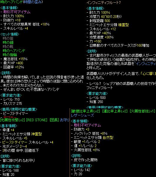 GWktkr! GW入る前の昨日は会社の歓送会で一番したっぱの私は注文受けたり、酒を注いだりさせられました・・・こ、これが社会人(´し _`;) そんな事はどうでもよくて、RSについて~ GW初日からシフが580になったのでモリ3デビューΣq|゚Д゚|p ワオォ 不屈も買ったのでGW中はうまうまですぞ! レベル上がってうはうはしていましたが・・・悲しい事がw このシフちゃんとメインテイマを今地下界送りにしているのですがなんとシフで地下行こうとして適当にアンジーに話しかけていたら間違えて悪魔にorz 仕方がないので再構成を貰い売ってしまった1/2頭の代わりを作ることにはい、ちゃっとで言っているように最近運が悪いな~ っと感じていたので再構成で運が良いか悪いかチェック...¢(-∀-○) ( ゚∀゚)アハハ八八ノヽノヽノヽノ \ / \/ \ 私の運の良さは圧倒的じゃないか! そこでこのnanohaは考える・・・・・はたしてどの程度運が良いのか・・・ てなわけで・・・(○ゝ`ω・) はい、前にも言っていた欲しい装備の1つ団長∞笛に挑戦です! ρ(・ω・、)イジイジ もうね・・・出来た時跳ねあがりましたねw こんなに嬉しかったのは久しぶりでしたねw しかし! まずこれは∞1であること、団長が3であること・・・完成は団長4の∞8と考えています。 いくらかかるんでしょうね?w