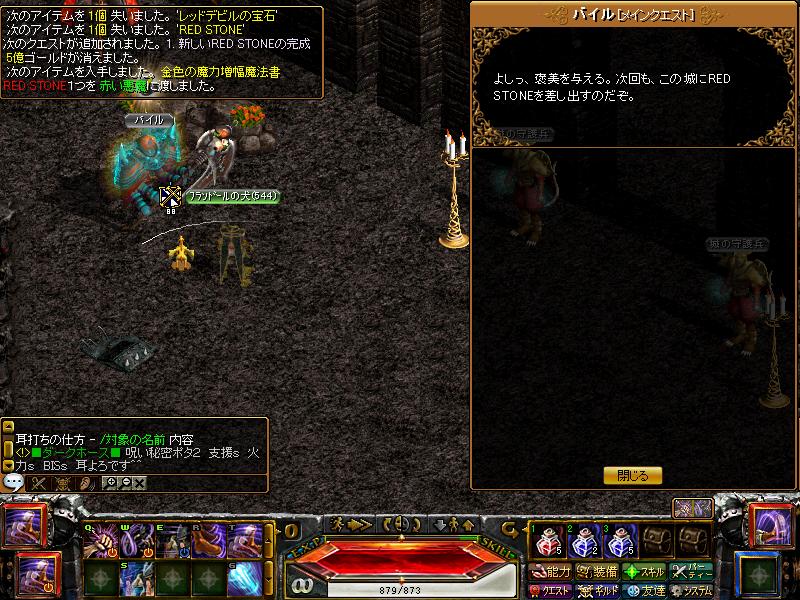本日も懲りずにレッドストーン日記⌒*(・∀・)*⌒なの今回はですね。 シフでGDB5ソロってみますた。 ん~ まぁ何も問題はなかったですねw テイマで行ってた時は雷が痛かったけどシフじゃ全く問題ないですね。 というかB5のボスってB4のより弱い気がしますね。 B4は全く回避出来なくてボスは倒していなかったな・・・ んでお次はテイマのB9を! と行きたい所でしたが、またSS取り忘れましたのでまた来週w その代わり今回は神秘B2の賭博師を デスヨネー 残念ながら今回はそうはいかない ログ流しで消えてましたが、実は1個だけアイテムのかけら出てたんですよね~ そして鑑定したら不滅・・・( ・´ー・`)ドヤッ 懐が一気に温まったじぇ