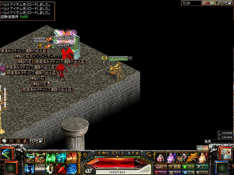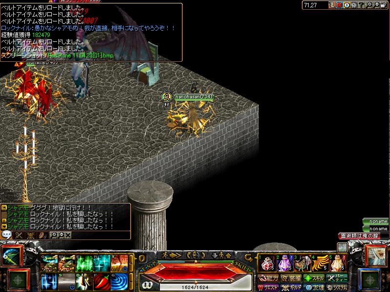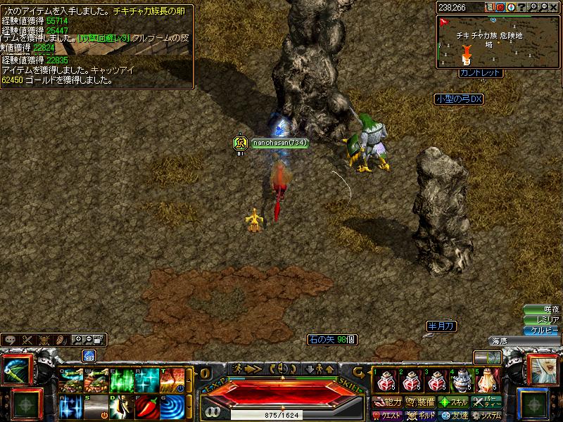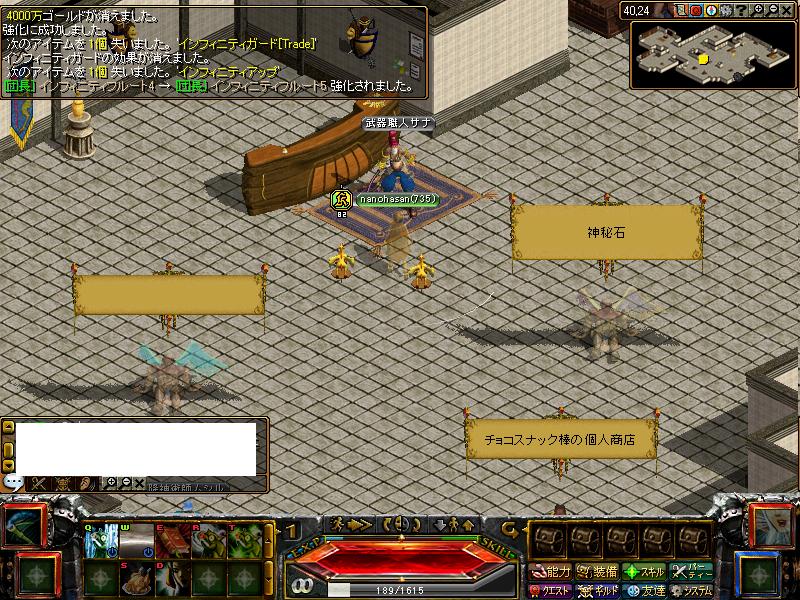 nihao~ 厨二のnanohaだお。最近メルティーブラッドをリア友とゲーセンでやったけどあれ面白い(゚・・_,゚*)ネーさっちゃん可愛いよ、さっちゃん。バーチャよりはまりそうだw さて、ここからは数日分のRS日記ぃぃぃ ははw 売れると思って小型手裏剣を再構成しますた。しかしだよ・・・これが全く売れないwwwwまぁ露店する物が無い時の埋め合わせに使います・・・ お次はテイマで地下行った報酬の消滅の魔法書?だかを受け取ってOP消してエンチャしてみますた。HPが付いて満足満足です! 店売りでこんな高額は初めてだwwやっぱ有限武器にDXは最強だ・・ 毎週土曜日の攻城の為にP戦!こないだGメンと行ったけどちと点数足りなかった為もう1回行ってきますた。え?減点?ワームに引っかかって死んだんだじゃないんだからね>< そんでもって攻城戦ですたい。まぁ負けましたけどねwGチャで叫んでいますが、これはですね・・・ なんと残り1%で負けました。く、悔しい(ビクンビクン)お相手はソウルハッカーズ様でしたが、4人でここまで出来たので満足でしたけどねw次こそはGH2を勝ち取りたいです!