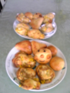 久しぶりにパンを焼きました。チョコチップパンと、コーンチーズパン、シーチキンパンです。たくさんになるように少し小さめにしました。子どもにはチョコペンを使って、リベンジするためアンパンマンを作りましたが、ちょっと表情が違うような・・・子どもがアンパンマンだ!と言ってくれればいいのですが・・・今日は朝からよく寝てくれたので、落ち着いて作れました。保育園から帰って喜んでくれるといいな。