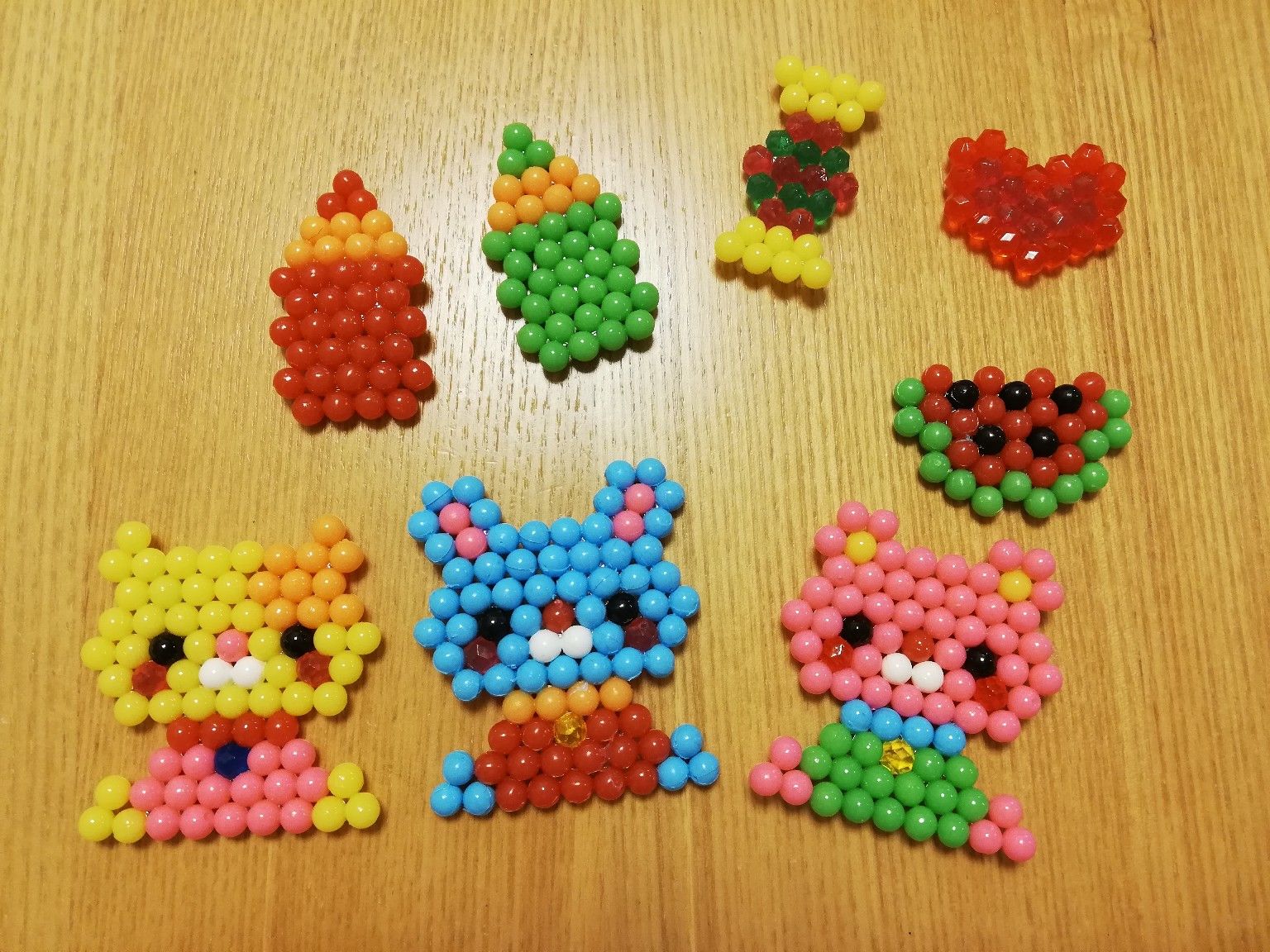 現在年中の娘、お正月にアクアビーズにハマって以来、いまだにブームで朝起きてから寝る前までずっと「アクアビーズ、アクアビーズ」と言っています💦 はじめは見守りながらやっていましたが、ひたすらやりまくるのでもう全部自分でやらせています😅 お友達が家に来た時に一緒に作ったりできるのは良いですね✨