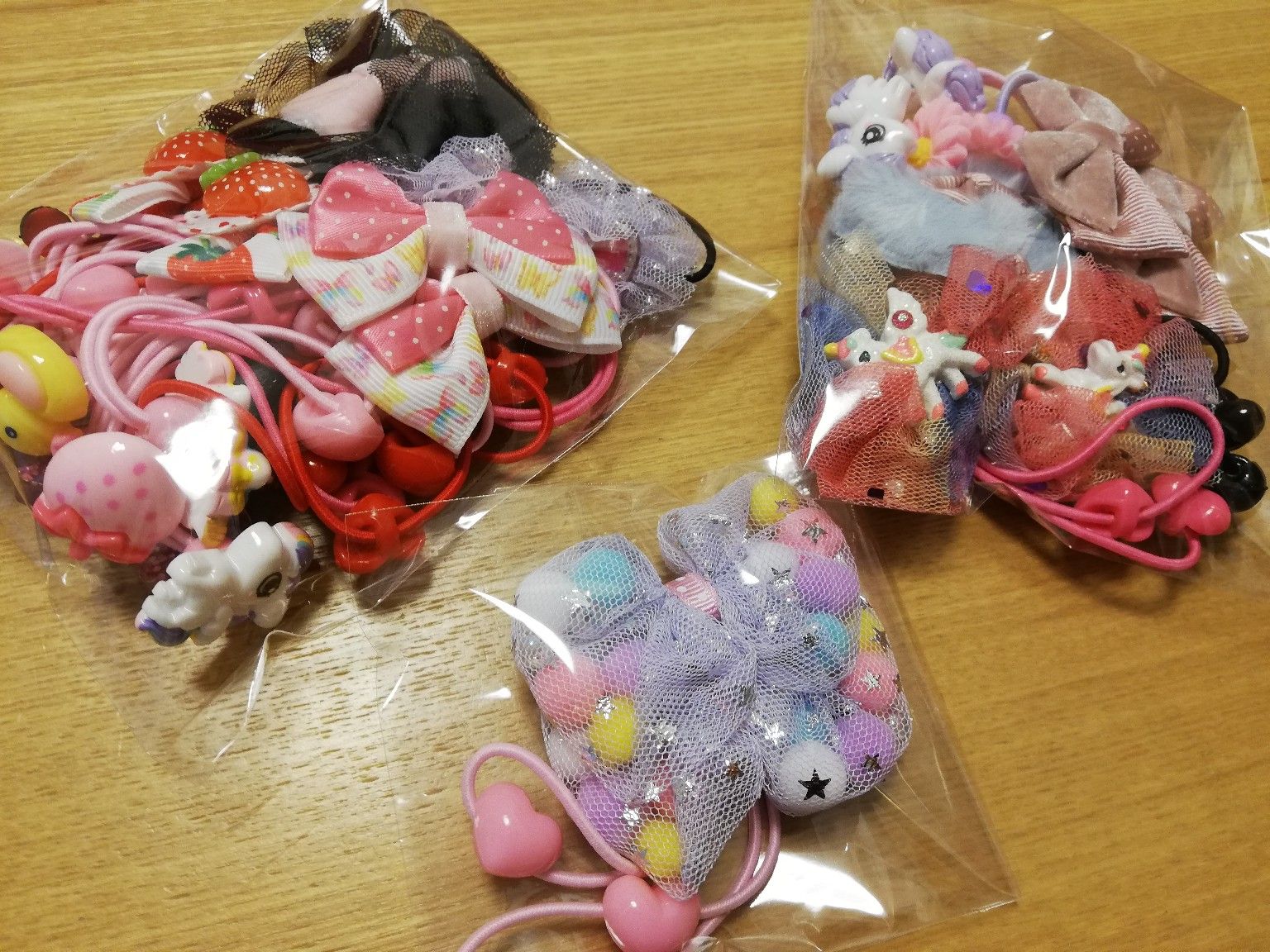先日のお買い物マラソンでポチしたcollabo collectionさんのヘアゴム、昨日届きました~✨ 購入したのは、 星柄チュール袋の2本セットヘアゴム Mixレインボーチュールヘアゴム入りセレクトセット 1111円ポッキリ!新春運試し福袋 の3つです。 福袋は私がポチして間もなく売り切れていたのでアフィはなく、あと2番目のセレクトセットはデザインがリニューアルしたみたいで私の購入したものと中身は違います。 では1つ1つ見ていきたいと思います😊 1つめの星柄チュール袋のヘアゴム、色違いも欲しくなるくらいカワイイです💕 100均でも似たようなものを見ましたが、大き過ぎて髪の少ない我が子には無理で…💦 ちょうど良いサイズで、ゴムも細くて結びやすそうです✨ 欲を言うとゴムの長さを選べると良いのにな~。 何周巻かなあかんねん❗くらいグルグルしないといけないので… 送料込みの410円なので、これだけで買えばまぁそれくらいかなと思いますが、他の商品と一緒に買って送料無料になっている場合だと送料上乗せしてる分安くして欲しいなぁ…なんて思ってしまいます😅 2番目のセレクトセット。 私がポチした時は売り切れている色もあったので、妥協もありますが、まあまあかなと思います。 3つ目の福袋はこんな感じでした😊 下の段のアップ。 上の段のチュールのヘアゴムはかわいいんですが、ちょっと傷があるものもあり😣 右側のハート表面。 福袋なので代わりはない気がしますが、一応問い合わせてみようかなぁ… 福袋以外のヘアゴムを含む全てのヘアゴムの中から娘が選んだベスト3はこんな感じです😚 「ペガサスの目、大きさ違うよ?」と教えましたが、それでも良いとのこと😅 ちなみにベスト4~6はこれ。 福袋に入っていた11種類のヘアゴムのうち私的にうーん…と思うものが3つくらいあったので、1111円で8種類のヘアゴムと考えるとお得と言うより妥当なような気もしますが、娘が大喜びしているので良かったです🎵 強度は100均よりマシな気もしますが、長持ちはしないかなーと思います😅 他にもカワイイのがいっぱいあって気になりますー😍