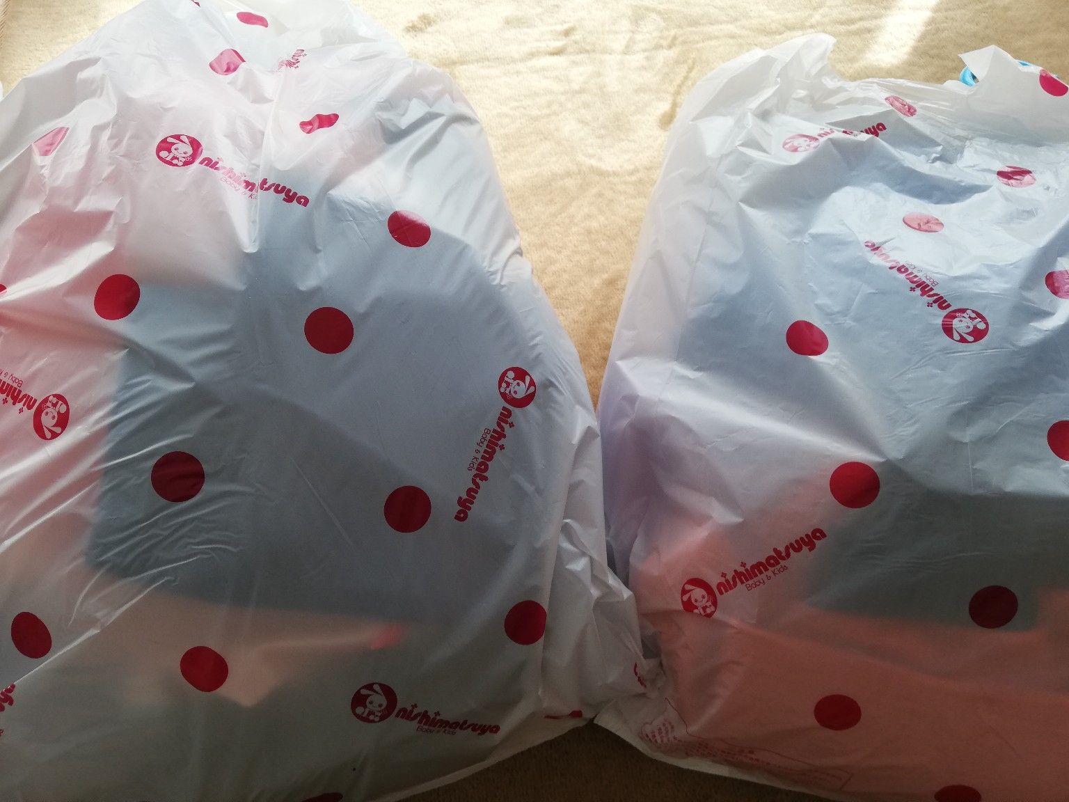 昨日ブロガーさんのブログで知り、初めて西松屋さんの70%OFFセールに行ってきました❗子どもの習い事が終わってからの遅い時間だったので「もう良いのはないかな~」と期待せず💦簡単に購入したものを記録していきたいと思います☺️まず最寄りの西松屋へ行って買ったもの。☆ジオウ(110cm)¥503〈本体〉ポリエステル 70%綿 30%〈袖・パンツ〉ポリエステル 100%〈リブ部分〉ポリエステル 62%綿 33%ポリウレタン 5%☆パトレンジャー(100cm)¥503素材はジオウと同じポリエステル100%は好きではないし、生地も薄いし「うーん…」と悩みましたが、娘にプリキュアがあるのに息子に何もないのはかわいそうと思って買いました。 ☆前開き電車総柄(110cm)¥383綿 100%☆ドラゴンボール(110cm)¥503〈本体〉綿 100%〈リブ部分〉綿 97%ポリウレタン 3%ドラゴンボールは首もと寒そう…と思いましたが、綿100%で生地もしっかりしているし着せてみたくて買ってしまいました😅☆プリキュアパジャマ(110cm)¥893〈本体〉綿 60%ポリエステル40%〈リブ部分〉綿 95%ポリウレタン 5%120cmが欲しかったー😣少し離れた西松屋で買ったもの。☆トミカ(100cm)¥503〈本体〉ポリエステル70%綿30%〈リブ部分〉ポリエステル62%綿33%ポリウレタン5%☆おさるのジョージ(100cm)¥503〈本体〉ポリエステル70%綿30%〈リブ部分〉ポリエステル60%綿35%ポリウレタン5%☆HUGっとプリキュア(120cm) ¥503素材はジオウと同じオーバーパンツ(100~120) ¥179綿 49%アクリル 26%ポリエステル 21%ナイロン 2%ポリウレタン 2%楽天でも130cmなら在庫あります。迷って迷って結局買ったミニオン。ミニオンズ着ぐるみパジャマ(110cm、120cm)各¥563〈本体〉ポリエステル 100%〈リブ部分〉ポリエステル 95%ポリウレタン 5%肌着はどちらの店舗も小さいサイズしか残っていませんでしたし、パジャマも余り物の中から選ぶという感じでした。遅い時間だったので今日の朝イチに行った方が陳列し直したりして良いものがあるかもーと思ったのですが、予定があり無理だったので昨日のうちに買いました。次行くならやっぱり初日の朝イチですね💦