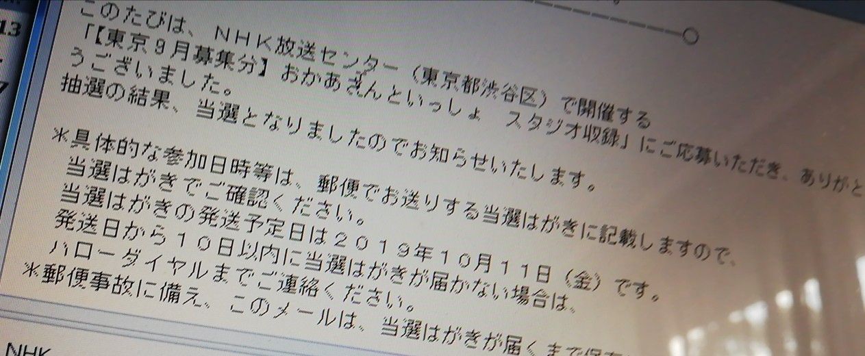 先週末、運動会延期のお知らせが幼稚園から来るかなーとメールをこまめにチェックをしていたら… あー、また落選ね… とスルーしようとしたのですが、 あれ?? と、と、と、と、と、当選?! 二度見どころか三度見くらいしました😅 娘の時は毎月応募していたのに1回も当選せず… 息子はの時はたまーに応募し忘れたりしましたが毎回落選メールが来るのでもう完全にあきらめていました。 当選に喜んだのも束の間、日程が幼稚園の行事と重なっているんじゃないかという不安…。 やっと今日手元にハガキが届き、ギリギリ行事と重なっていないことがわかり、無事行けることがわかりました✨😭 年末のお遊戯会と重なったら辞退するしかないと思っていたので、ホッ。 予想通り娘が「ずるいー!」と言っていますが💦 お遊戯会の前々日なので娘を連れて行って良いのか悩むところですが、まだまだ日があるのでゆっくり考えたいと思います。 せっかく東京に行くんだから、はやぶさとか見せてあげたいなー!! あとはインフルとか体調不良にならないことを祈るばかり。 予防接種は10、11月に家族全員済ませる予定ですが、予防接種は気休めにしかならないですからね… 無事収録に参加できたら、感想など書きたいと思います!