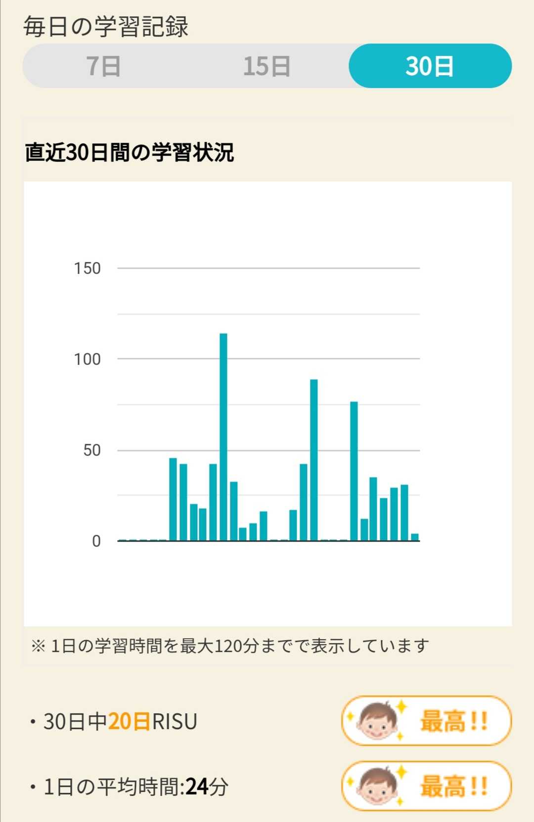 RISU算数は毎日やる必要はなくて、週2回以上、1回あたり15分~30分程度の学習が推奨されているみたいなので、RISUに取り組む曜日を決めておけば子どもたちはもう少し楽しく取り組めたのかなあと思いました。