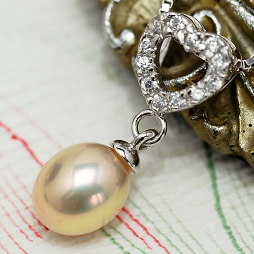 2200円(税込)送料別 8mmドロップ淡水真珠ハートペンダントトップ AAAロット選り抜きの別格の美しさ!ジルコニアが煌めくオープンハートデザインです♪