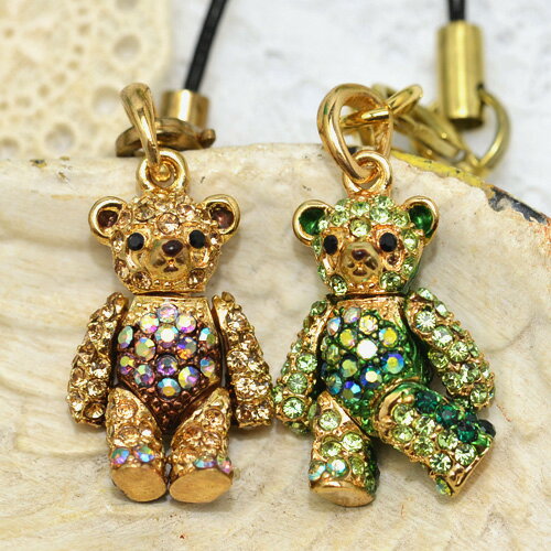 週末限定タイムセール2/23 朝09時59分まで 888円(税込)送料別 メール便可 キラキラかわいい スワロフスキー テディベアストラップ イヤホンジャックパーツお付けします【メール便可】