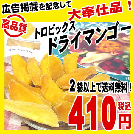 410円(税込) 2袋以上で送料無料 【2袋以上で送料無料】フィリピン・ミンダナオ産トロピックス・ドライマンゴー80g入【メール便】【代引き不可】【ギフト不可】