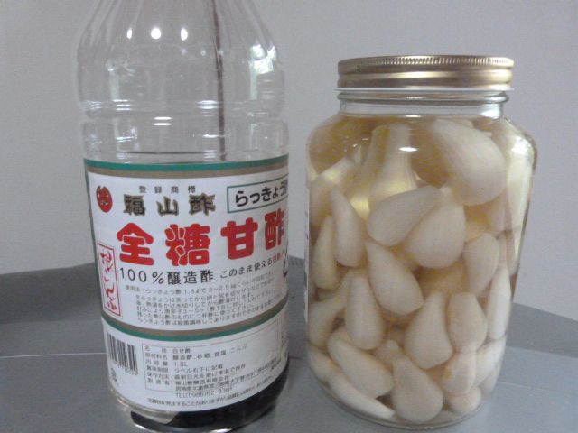 らっきょう酢・全糖甘酢(福山酢醸造)1.8L×1本 福山酢のらっきょ酢で漬けました。らっきょを洗うのが大変ですが洗って拭いて塩をまぶして一晩冷蔵庫に、沸騰したお湯にさっとくぐらせまた拭いて保存瓶に入れラッキョウ酢に漬け込むだけで美味しいラッキョウができました。