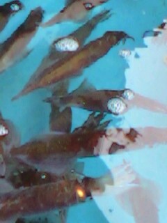 熱海から伊東方面に向かって車を走らせると 網代(あじろ)をちょっと過ぎたあたりの右手に いけすがいっぱいある「味くらべ」ってお店でランチしました。 ついさっきね。 生きたヤリイカがいっぱい泳いでて (写真) イカ好きのダンナちゃんは新鮮なイカに惹かれてフラフラっと… さっそく、いけすからイカをとってもらってさばいてもらったら… (写真) メッチャ動きまくってる! コリコリした食感が新鮮だし甘い♪ …で、ここまでは良かったんだけど… イカの白子って初めて食べて2人でパニクった~!! (@@;) だって、すっごいねちゃねちゃで 口の中にこびりついて気持ち悪っ!! なかなかとれなくて大騒ぎ! コレって罰ゲームとしか思えないよ~。┐(´ー`)┌ 他にフグ雑炊や茶碗蒸し食べたけど、どれも味が悪くて値段は高い! ハッキリ言って観光客狙ったぼったくり店としか思えない…。 「味くらべ」はいけすの新鮮な魚を食べるだけならいいけど 他は全体的にマズいから&高いし二度と行く気しないなぁ。 ランチは大失敗でした。(-.-;)