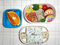 今日の幼稚園は、お弁当でした。 シュウマイ、青のり卵焼き、レンコンきんぴら、 さつまいも、絵柄付かまぼこ、ブロッコリー、ミニトマト、 キュービック型ふりかけおにぎり、オレンジです。 おにぎりを、キュービック型にする道具があるのですが、 なかなか楽しいです 先週土曜日に幼稚園でイベントがありました。 日頃から練習してきた、キッズダンスやお歌、そして鼓笛を披露。 ハルは小太鼓です。 ハルは青いバンダナしてます おとといからお腹が下り気味な私・・ どうやら風邪がお腹にきてしまったよう? 昨夜は、夜泣きで授乳中に急にお腹が痛くなり授乳を中断 ヒマ大泣き