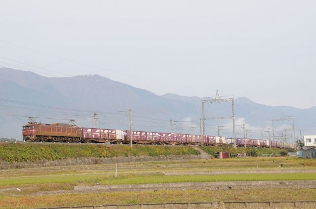 明日(12/23)やっと時間ができたので日本海の撮影に行こうと思っていたら、運休ですね。(涙)2011.10.28(金)今日も過去画像です。2011.10.28 3095レ EF510-4+コキ 東海道本線 島本-山崎SONYα55+MINOLTA AF 75-300mm F4.5-5.6,210mm,ISO160,1/500秒,f5.1,WBオート(連続撮影優先AE)EF510-4号機です、そろそろ1号機も出て来そうな…2011.10.28 4071レ EF81-129+コキ 東海道本線 島本-山崎SONYα55+MINOLTA AF 75-300mm F4.5-5.6,300mm,ISO200,1/500秒,f7.1,WBオートやっぱパーイチですね。 2011.10.28 東海道本線 島本-山崎↓↓↓↓↓ 「にほんブログ村」のブログランキングに参加してます、下のバナーをクリックしていただけると幸いです、応援よろしくお願い致します。にほんブログ村にほんブログ村にほんブログ村