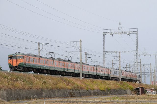 2011.12.26(月)オノワニに着いて最初にやって来たのが、カボチャ色+混色編成でした。2011.12.26 2831M 113系C10+L07編成 湖西線 和邇-小野Nikon D300+AF-S NIKKOR 18-200mm F3.5-5.6 VR,105mm,ISO400,1/500秒,f9,WBオート225系の増殖で玉突き的に押し出されている113系です、紀勢本線・阪和線の113系阪和色も運用を終え113系の今後の動向が気になります。C10、L07編成ともWパンタですね。2011.12.26 2831M 113系C10+L07編成 湖西線 和邇-小野Nikon D300+AF-S NIKKOR 18-200mm F3.5-5.6 VR,52mm,ISO400,1/500秒,f9,WBオート4両+4両ですがオール湘南色も見たいですね。 2011.12.26 湖西線 和邇-小野↓↓↓↓↓ 「にほんブログ村」のブログランキングに参加してます、下のバナーをクリックしていただけると幸いです、応援よろしくお願い致します。にほんブログ村にほんブログ村にほんブログ村