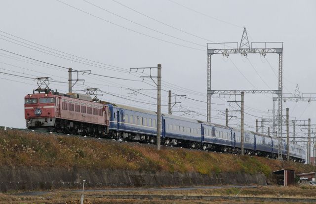 2011.12.1(木)増結編成の日本海を撮りに上淀(新大阪-大阪)に行って来ました。2011.12.1 4002レ 日本海 EF81-107+24系11両(2両増結)東海道本線 新大阪-大阪Nikon D300+AF-S NIKKOR 18-200mm F3.5-5.6 VR,90mm,ISO400,1/500秒,f9,WBオート久し振りの上淀です、いつもより少し鉄橋寄りに構えてみました。2011.12.1 4002レ 日本海 EF81-107+24系11両(2両増結)東海道本線 新大阪-大阪Nikon D300+AF-S NIKKOR 18-200mm F3.5-5.6 VR,52mm,ISO400,1/500秒,f9,WBオートローピン107号機です、最近ローピンの確率が高いです。(私の撮影時)大阪←EF81-107+オハネフ25-129+オハネ25-38+オハネ25-210+オハネフ24-27+オハネ25-220+オハネ25-213+オハネ25-211+オハネ25-215+オハネフ24-15+オロネ24-4+カニ24-112→青森2011.12.1 4002レ 日本海 EF81-107+24系11両(2両増結)東海道本線 新大阪-大阪Nikon D300+AF-S NIKKOR 18-200mm F3.5-5.6 VR,35mm,ISO400,1/500秒,f9,WBオート思っていたより人が少なく、まったりと撮影できました。 2011.12.1 東海道本線 新大阪-大阪↓↓↓↓↓ 「にほんブログ村」のブログランキングに参加してます、下のバナーをクリックしていただけると幸いです、応援よろしくお願い致します。にほんブログ村にほんブログ村にほんブログ村