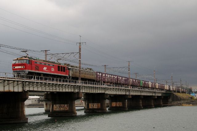 2011.12.3(土)九州から応援に来てたEF81-303号機が役目を終えて3092レで運ばれると情報を頂き撮影に行くことにしたのですが、目撃情報を確認すると、「日本海」が約4時間遅れで、3092レが約2時間遅れという事でした。2011.12.3 3092レ EF510-18+EF81-303(無動)+コキ 東海道本線 瀬田-石山Nikon D300+AF-S NIKKOR 18-200mm F3.5-5.6 VR,46mm,ISO500,1/500秒,f6.3,WBオート前回ここで撮影してないので瀬田川に決めました、遅れも約2時間20分ほどで、あまり時間差が無かったので助かりました。2011.12.3 3092レ EF510-18+EF81-303(無動)+コキ 東海道本線 瀬田-石山Nikon D300+AF-S NIKKOR 18-200mm F3.5-5.6 VR,28mm,ISO500,1/500秒,f6.3,WBオート2011.12.3 3092レ EF510-18+EF81-303(無動)+コキ 東海道本線 瀬田-石山Nikon D300+AF-S NIKKOR 18-200mm F3.5-5.6 VR,36mm,ISO500,1/500秒,f6.3,WBオート銀釜はカッコ良いですね~ 2011.12.3 東海道本線 瀬田-石山今回は行けませんでしたが次回あれば新潟まで行きたいですね、情報ありがとう御座いました。↓↓↓↓↓ 「にほんブログ村」のブログランキングに参加してます、下のバナーをクリックしていただけると幸いです、応援よろしくお願い致します。にほんブログ村にほんブログ村にほんブログ村