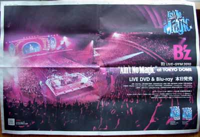 朝日新聞に 「B'z LIVE-GYM 2010 “Ain't No Magic”at TOKYO DOME」 の見開き全面広告 (2ページ) が載っています。他の新聞にも載っているかどうかは不明です。