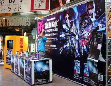 渋谷タワレコでは店頭で団扇を配布しています。 他の大型店でも配布しているのではないかと思いますが、数に限りがあるそうですから、欲しい方はお早めに。 団扇はDVDを購入しなくてももらえます。 記念スタンプもあります。 また先ほどまで渋谷店店頭にはB'zのラッピングが止まっていました。 まだ渋谷にいるかもしれません。 銀座、新宿にも現れるだろうと思います。