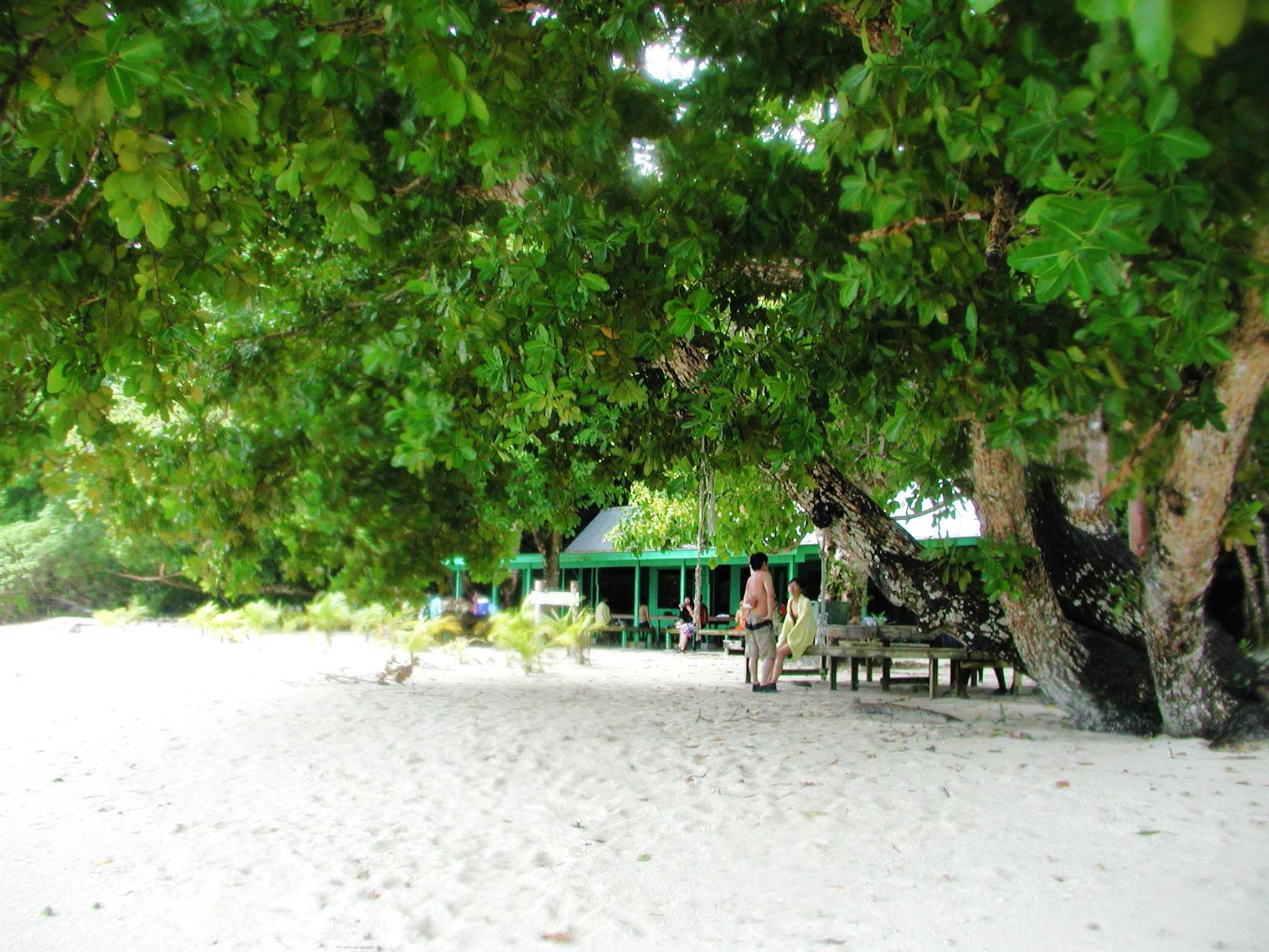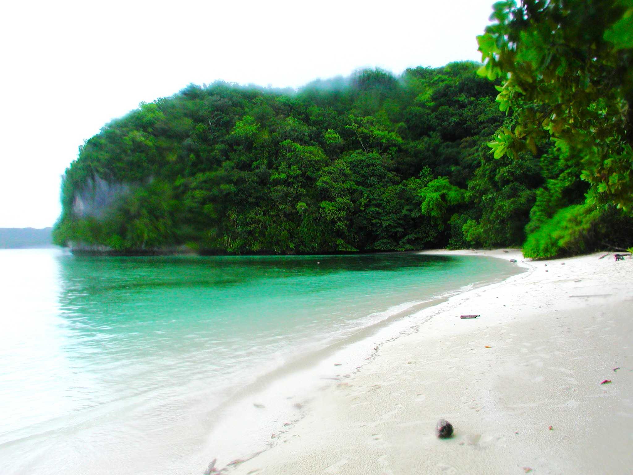 パラオの昼飯は2ダイブ後に無人島に上陸して白砂の浜とブルーグリーンの海を見ながら食べる。
