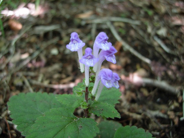 ★シソバタツナミソウ 中塩原地区でシソバタツナミソウが咲いていました。シソバタツナミソウはシソ科の植物で本州、四国、九州に分布します。山地に生える多年草で、高さ5~15cmになります。花は長さ2cmくらいの唇形です。開花時期は6~7月です。和名は紫蘇葉立浪草(しそばたつなみそう)で、葉がシソに似ているタツナミソウという意味です。タツナミソウは花の咲くようすを、打寄せる波に見立てた名前です。