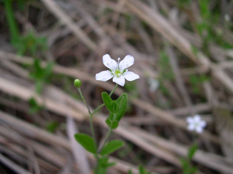 ★オオヤマフスマ 井口地区でオオヤマフスマが咲いていました。オオヤマフスマはナデシコ科の植物で北海道、本州、四国、九州に分布します。山野に生える多年草で、高さ10~20cmになります。花は径10mmくらいの白色です。開花時期は6~8月です。和名は大山衾(おおやまふすま)で、山に生える、花のやや大きい衾(ノミノフスマ)という意味です。花の白さを「大雪の雪」にたとえた名前とも言われています。