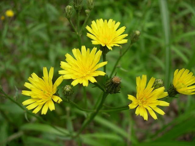 ★コウゾリナ 那須野が原公園でコウゾリナが咲いていました。コウゾリナはキク科の植物で北海道、本州、四国、九州に分布します。山野に生える越年草で、高さ25~100cmになります。花は径20~25mmくらいで黄色です。開花時期は5~10月です。和名は髪剃菜(こうぞりな)で、茎や葉に剛毛があり、触るとカミソリにさわったようにぞりぞりとした感じがし、痛いのでついた名前です。