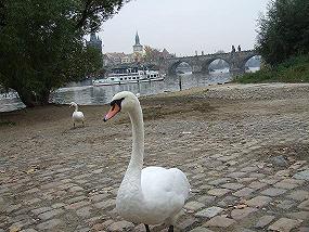 ヴルタヴァ川のマラー・ストラナ側の岸辺にフレンドリーな白鳥がいます日本の白鳥よりひと回り大きく、そしてとても人懐っこい人が来ると”ノッシノッシ”と歩いて近づいてきます大きな白い体に水かきのついた細い脚がアンバランスでカワイイホテルの朝食のパンを少しポケットに忍ばせてきてください手からもエサを食べるそうです(手をついばまれないようにご注意)場所は、プラハ城見学を終え階段を下りてきたところMalostranska駅からカレル橋方面3分ほど歩いた左手にヴルタヴァ川の岸辺が見えます少しだけ砂浜になっていて”白鳥”や”鴨”が住んでいますカレル橋をバックに観光船が行き交う景色を楽しみながらのんびり過ごす時間は最高この白鳥はヴルタヴァ川岸の所々でお目にかかりますときには橋の上まで上がってきていて、警官に見守られながら散歩を楽しんでいます