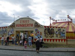 日本は夏のような晴天が続いていますが、チェコの道はもう落ち葉いっぱい緯度が近いだけあって、北海道の気候ととても似ています9月のワイン祭や秋祭りが一段落つくと町には『CIRKUS(チルクス)』看板やチラシがプラハ市内にいくつかある空き地には毎年違う≪サーカス団≫がやって来ますチェコの老舗サーカス団≪HUMBERTO≫団員のほとんどがフンベルトさん!”ザ・家族経営”チケットを売っていたお姉さんがレオタードを着て登場したり、風船を売っていたお兄さんがジャグリングを始めたり日本で活躍している有名なサーカスは大掛かりなイリュージョンもあって見応えがありますチケットは確かに高いけど、ライオンが火の輪をくぐったり、猛獣ショーも華やかチェコのサーカスで必ず登場する動物は―――馬やロバ馬の芸はチェコではじめて見ましたが、本当にお利口でビックリただ編隊を組んで走るだけでなく芸の種類もさまざまあとは各サーカス団によって象がいるのがウリだったりで、日本のように「猛獣勢ぞろい」しません『チルクス・フンベルト』には猛獣が充実!!ロジェ席(ステージサイド)は迫力満点ステージでは、人のショーのときだけビニールシートを敷きます敷いたり、取りはずしたりの時間にはピエロが出てくることも熊のショーがあるサーカスは珍しい通常の席だけど、近くで見られてウレシイ♪クマのぬいぐるみが動いているようでカワイイけど”口輪”が獰猛さを物語っているような・・・入場料は大人ひとり200KC~250KC (千円前後~)チェコにしてはそれなりなお値段のように思えるのですが、さらに高いステージサイドのロジェ席が人気家族で貸し切り小さな子供たちはかぶりつきで動物を見て大興奮、で大満足。ピカピカ光る(寿命の短そうな)おもちゃをねだって親を困らせるのは万国共通!?幕間は、ユーロドッグや綿あめ食べたりして過ごします。20KC~30KC(100円~150円)日本とは違ってイベント会場でも通常価格なのは良心的。ステージ裏手にある「動物テント」にも行くことができます『ZOO』と言ってお金を払えば係員が入れてくれます(20KC)幕間や終演後のステージでは子供たちが馬やロバの背に乗ったり、写真撮ったり(20KC)大人が乗っているところは見たことないけど、日本人なら大人でもいけそう(笑)2009年11月のサーカス記事『CIRKUS BERNES』はコチラ