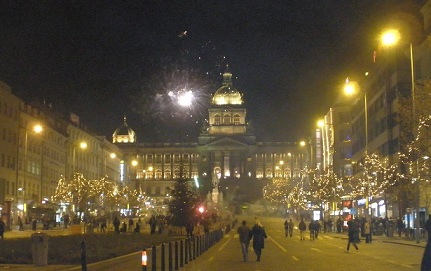 年末年始の様子も数年で少し変わりましたヴァーツラフ広場の爆竹・花火“無法地帯”になる範囲が半減ただし、今回もヴァーツラフ騎馬像がある一帯は近づけないデンジャーゾーン距離が離れていても体に響く爆竹の音を思い出す・・・MUSTEK方面は爆竹や打ち上げ花火などしているものの身の危険を感じるほどではありませんでした以前は広場全体が“爆撃まっただ中”で中央部分に足を踏み入れることなんて出来なかったヴァーツラフ広場でのNOVA(TVチャンネル)生放送はやっていませんでした、残念~そんなNOVAでは過去の音楽番組を数年分一挙再放送!やっつけ仕事な印象ですが、歌番組を見ていると年末な雰囲気になるのが不思議【2013年の年明け0時】ヴルタヴァ川に浮かぶ小船からフォ~ンと告げる音がなり、ソコココで一斉に花火が打ち上げられますプラハ市として打ち上げるのは「その船」からだけで、他の花火は会社・ホテル・有志などによるモノ本当に四方八方どこをみても花火・花火・花火しかも30分間ぐらい上がりっぱなし真夜中は盛り上がってボヘミアゼクト(チェコの発泡酒)やビール瓶をバンバン投げ割る人が多く、翌朝はどこもガラス破片だらけ【2013年1月1日18:00】1月1日18時1分の花火は国民劇場そばの川岸からあがりました!文化遺産の建物のこんなに近くで火を使って大丈夫なのかと心配になるほどの近さ事前のニュース番組では打ち上げ場所はStrelecky ostrovと表示されていたのに”不意打ち”(近いけど打ち上げ場所が違った)私がいた場所からは皆は身を乗り出して右にグイっと首を傾けての花火鑑賞となりました音楽と花火とがプログラミングされた10分間のショー後半はスメタナのヴルタヴァ(モルダウ)のテクノverチェコ国旗の3色花火がかわいかった上記のビデオでは07:00から08:00頃盛大で立派な花火でした!!市としてはシルベスター花火よりも1月1日18時の健全な時間に家族で楽しめるイベントに力を注ぎたいとのこと1月1日18時はチェコ国内の各都市で花火を打ち上げニュース番組内で各地の花火の打ち上げ場所を一覧でお知らせ都市によって打ち上げ時間が18時00分だったり、18時01分だったり(ちなみにプラハは18時01分)そこは統一したらいいのにぃ~チェコらしいわ===イベント誌や情報番組が当たり前の日本人にとってはーホテルフロントや観光案内所で『さぁ?どこで花火が上がるかわからないけど、川沿いにいたらどこからでも見れるよ。』と、アバウトに言われても納得できない。フロントマンから「1月1日はプラハ城は閉まっている」と言われたけれど、開いてたし。日本のように公式サイトが情報を正確に発信してくれるといいのですが・・・チェコ友が1日の花火に行くというので「どこから打ち上げる?どこから見るのがいい?」と、聞くと『うーん、川沿いならどこからでも見えるんじゃない?』と。・・・『国民性』。(解決)プラハ中心地は高い建物がないし、確かに見えるんだけど