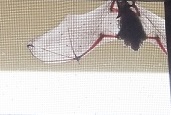 今朝から外は雨。 午前中、少し小降りになったので窓を開けて網戸にすると・・・そこにコウモリが こんなに間近で見たのは初めてかも(>□<)。 最初は羽をたたんで寝ていたけど、の写真は羽を広げて威嚇しているところ。 年に数回は目撃するコウモリ・・・ コウモリって日本中にいるのかな(・_・;)