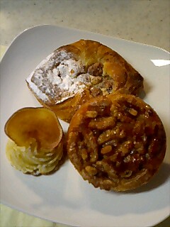 昨日、お風呂で発見したことがある。発見といってもきっと「常識」だから・・・「人の贅肉は下へ下へ ↓↓ の一方通行である」私は母が乳がんになったということもあって入浴時にたまに「乳がんチェック」をしている。その時にこんな声が聞こえてきたのです・・・・myむね 「君、最近またまた逞しくなってきてるね」myおなか 「まぁね! そいういうあなたは昔からコンパクトだね!」そう。。ここんとこ食べ物が美味しくてついつい食べ過ぎている。元々よく食べるんだけど、今の運動量にはふさわしくないくらいに食べている。お腹のお肉も立派に育つわけ。だけど胸は別物らしい。狭いバスタブに無理矢理寝そべるようにしてお腹まわりのお肉をまとめて上へ引っ張ってみたけど・・・無駄・・・(≧m≦)ぷっ!おへその辺りにならまとめられるけど上へは来てくれない。あばら骨で引っかかって痛い。 お腹だけじゃない++++下半身デブの私の太もももよく、よく育っている。以前なら「もうヤバイ」と何かしら手を打っていた。でも、今の私のすることといえば・・久しぶりに大好きなパン屋さんへ行ってきた。以前に比べて種類が増えていて目が輝いてしまったヾ(@^▽^@)ノ ワーイ もともとデニッシュ系のお店なので、どれもこれも私好み♪「おさつモンブラン」 「胡桃デニッシュ」 「ナッツのデニッシュ」どれも美味しかったけど、私の中では「ナッツのデニッシュ」が一番だったなぁ。「おさつモンブラン」はとてもシンプルで自分でも出来そうな気もする・・また通わないと!と心に決めて帰ってきました。こういうことをしている限りはスリムにはなれないわ ( ̄ー ̄; ヒヤリでも、でもね。女を捨ててる訳じゃぁないのよ! (^0^*オッホホ