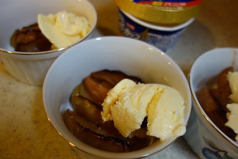 バニラアイス(安いので十分)を載せて