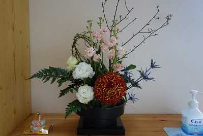 今年は和モダンな雰囲気にしてみました(たくさんのお花の中から選ぶのは難しい