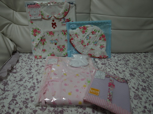 こんばんは^^今日は変な天気でしたね。雨も降ったりしたので、止んでからおつかいだけ行って来ました。あとは今日はいろいろ片付けを~。押入れのケースを2ケース空けて娘ちゃん用に入れられるようにしました。あとは、ちょっとずつ洗濯~。明日も、いつもの+娘ちゃんの洗濯です。爽快ドラッグさんから発送メールが来たので肌着とかも洗えるかな?ただ、整理していたら娘ちゃん用に使える新生児サイズが全くなく~^^;いろいろ買わないと無理そうです^^;今日ポチしたもの☆出産準備や産後の買い足しに便利!シンプルプリント新生児肌着3枚組ピンクセットをポチ☆*スウィートガール*アウターにもGOOD!主役級ロンパース愛され小花りぼん長袖ロンパースパープルの60をポチ☆これは一目惚れ~^m^退院するとき用に^^白にしました~^^ちょっとキャスっぽいかなって^^【赤すぐ掲載商品】*スウィートガール*ちっちゃな頭を優しく可愛く包む春夏にぴったり♪お花姫新生児帽子【あごゴム】\2012年春夏SALE/*スウィートガール*プリンセス気分満点♪お花姫新生児ツーウェイオール靴下も^^退院やお披露目の時にピュアホワイト新生児ソックス【靴下:新生児】選ぶのに時間が、かかちゃってます^^;女の子のは迷いますね~^^;ではでは、おやすみなさい~☆今日も読んでくださってありがとうございます^^また遊びに来てくれたら嬉しいなぁにほんブログ村にほんブログ村