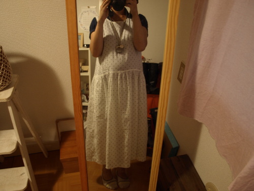 こんばんは~^^今日は、久々に吉祥寺へ行って来ました☆もう出産前に行けるのは最後かも。。。産後はもちろん、しばらく行けないし~^^;パパと息子に付き合ってもらって、行って来ましたよ~^^今日のコーデ今日は帰宅してから、オリンパスのほうで撮ってみました。ちゃんと出来た!!しばらくはコレでいきたいと思います~。*スタジオクリップ カットソー*コロニー ワンピ*momoちゃん手作りネックレス*フレンチブル パラソルカバーバッグはアンヴォクール靴はアロマドミュゲクラリスでした☆久々の吉祥寺に大興奮☆実はウサギィーさんから、ローズちゃんがsaleになっていたことを聞いていました^^狙うは、やっぱりローズちゃん!!パパに息子を見てもらって試着~!のはずが。。。パパがお手洗いに行っている間に、息子も行きたくなったらしくいったん息子を連れてお手洗いへ~。その後も、しばらく離れようとせず、べったりモード。。。今日は甘えっこちゃんでした^^;なぜ今日~?^^;やっと息子がパパのところへ行ってくれたので試着したいものを何点か選んで、いざ試着!!一番欲しかったローズちゃんのワンピはお腹がぴったりで。。。あまりにもワンピがかわいそうな感じに(涙)断念。。。次にローズちゃんの革紐キャミワンピタイプを試着!こっちはゆったりめで、OK^^変な話、革紐片方ほどけば、授乳できるかも?という思惑も(笑)ピンドットジャガードのぺティスカートはお腹回りはキツイものの、やっぱり可愛い~。店員さんのローズちゃんに合わせても可愛いかもという言葉が後押しに。トップリネンギンガムチェックノースリーブBLこれが1番よかった!あくまでマタニティなわたしの感想ですが(苦笑)お腹回りもしっくり隠れるし、スカーフ効果で腕もほっそり見える~!ネイビーも想像以上に可愛くて、でも秋の重ね着にも~と思ってパープルに決定^^ということで、シュシュは久々の大暴走で(笑)3点大人買いしちゃいました~^m^ワンピとブラウスは40%オフで、スカートは50%オフでしたよ^m^続いてniko and。かずんさん が買っていたシャムパンツと バルーンパンツ が気になって試着^m^シャムパンツ もとっても可愛かったのですが(わたしは無地のカーキを試着しました)シュシュで散財した後だったので。。。バルーンパンツにしました。吉祥寺はネイビーが2点ほどで、ベージュもあったら2点買いしたかった!2点でさらに20%オフに惹かれて。。。なぜか レース付け襟 も購入~。ちなみにバルーンパンツは30%オフ付け襟は50%オフで、プラス20%オフでした^m^あとはSM2もチラッと覗いたのですがセール品は品薄でした~。ウサギィーさん が買っていて気になっていた半袖はなく、タンクのみあったのですが、ブルーがなかったので諦め。。。SM2の前にある激安子供服のお店で、娘ちゃんのロンパースをget^m^70で冬素材で1000円くらい~とお買い得でした^m^写真の順番がおかしくて、ごめんなさい~。。。次の日記で購入品で楽天さんにあるものをピックアップしていきますね^^気になったものなども~^^今日も読んでくださってありがとうございます^^また遊びに来てくれたら嬉しいなぁにほんブログ村にほんブログ村