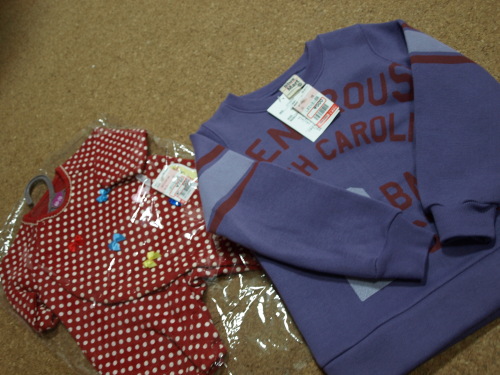 続きまして☆西松屋としまむらの戦利品です~^^西松屋でへびさんのカバーオール発見!サイズは70 80 90だそうです~。娘ちゃん用に70を買いました^^ちなみに1479円です~☆息子はユニクロで買った黄緑のパーカーにアイロンでつけられるフェルトでへびっぽくする予定☆果たしてちゃんと出来るかな~?^^;しまむらでは500円のものを2つ^m^息子にはトレーナー、娘ちゃんにはカバーオール。カバーオールは前からチェックしていて780円のものが値下がったので買っちゃいました^m^へびさんのカバーオールは年賀状用です~^^みんなは年賀状どんな感じにするか決めましたか~?最近携帯に迷惑メールが多くて困っています~。。。何か対策しなくては~。。。登録していないところから変なメールが~(涙)メアド変えたり面倒だわ~(涙)うう~眠いのが限界です。。。ではではおやすみなさい~。。。コメントのお返事が遅れていてごめんなさい~。ではではまた^^今日も読んでくださってありがとうございます^^また遊びに来てくれたら嬉しいなぁにほんブログ村にほんブログ村