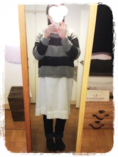 こんにちは~^^今日は寒いですね。。。朝雨が思ったより降っていてビックリ!雪になるのかな~。。。図書館の本が明日までなので今日行くか明日にするかそれによるって感じなのですが。。。どうしよう~。。。お年玉付き年賀はがきの当選番号発表されましたね^^切手とかでも当たってるといいな~^^録ってあったドラマも洗濯物を畳みながら観ました^^ビブリア~はためしにって録ったのですが面白くてはまっています^^AKIRAさんがGTOの時とは全然違うのですが意外と文学青年系もいいかも(笑)2回目で出てきた田中くんは何だかしっくりしていて素敵でした~^m^回ごとに1冊本が出てくるのですが読みたくなります~!1回目は夏目漱石 2回目は小山清でした~^^今度図書館で借りてみようかな^^【中古】 それから / 夏目漱石落穂拾ひ・聖アンデルセンは見つからなかった~。。。ビブリア古書堂の事件手帖~栞子さんと奇妙な客人たち~ / 三上延【中古】afb【10P22Nov12】↑本も読んでみたい~^^あとは終電バイバイ。今回は切なかった~。。。つまらないから話聞いていなかったって。。。自分がされたら凹みますね^^;しかも付き合っててだと~^^;他にも色々観ています~^^またちょこちょこドラマの感想なんかも書いていきたいな^^22日のコーデ*赤本 ボーダーT*スタジオクリップ チュニック*niko and ラムウール100カーデ*シュシュドママン ライトオンスペインターデニムデイリースタイルさん再値下げですね~^^半額は嬉しい☆イチアンティークス 50%オフ【Sale!50%OFF!】ICHI Antiquite's(イチアンティークス)ピンストライプスキッパーシャツチュニック/LT40603シュシュドママン 50%オフ【Sale!50%OFF!】Chou Chou de maman(シュシュドママン)ウールリネンフレアーキュロット/P029【Sale!50%OFF!】Chou Chou de maman(シュシュドママン)アルパカウールリノニット ベスト/K078アウトレッ庫さんで気になるもの☆インド伝統の更紗柄をベースにしたパネルプリントがポイント【70%OFF】パネルプリントスカート(S,Mサイズ)ではでは~お昼食べちゃいます^^今日も読んでくださってありがとうございます^^また遊びに来てくれたら嬉しいなぁにほんブログ村にほんブログ村