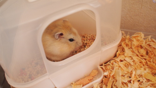 シンプルなものを探していたのでこちらに。ケージのコーナーにピッタリだし、脱臭炭もついてます。ちゃんと、ハムちゃんにかじられないようになっています。ただ、付属の砂は 固まる砂なので固まらないものを購入しました。(食べてしまったら危険なので)燃やせるというのは、処理が楽でいいですね!もし食べてしまっても、安全とのことです。食べないでほしいですが…ハムちゃんが 我が家に来てから3日目。おしっこは確認できませんが(してるのかしてないのか…砂の変化がいまいちわからない)うんちもちゃんとここでしているのです!えらい!えらいぞ!少し匂いが気になったので、砂を今日交換しました。砂を少し残し、トイレだということを忘れないよう…結果、また すぐウンチしてました。こんなにチビなのにえらいなぁ。その後、いろいろなところの飼育記事を見ていると、ハムちゃんは居心地のいいところで、ウンチをするみたいですね。ということは…トイレ砂は頻繁に種類を変えると ハムちゃんが混乱するらしいのでしばらくはこの商品を使いますにほんブログ村