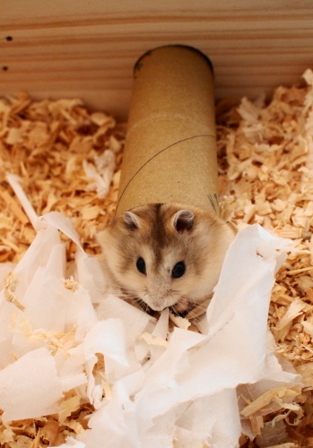 地下っぽさを演出のために…トイレットペーパーの芯。ここから ヒョコヒョコ出てくる姿がかわいい。このおうちにしてから、回し車を回るようになり 今日も朝方まで元気に走っていた模様。(夫談)そして初めて ペレットが空になっていました!ペットショップにいるころから ミックス中心の生活だったのでペレットになれるか心配だったのですが…よかった。粟の穂を食べている隙におうちのお掃除をしたのですが昨日ウンチを片付けたのに、もうウンチがたくさん…!そして食べかけのペレットを4つ蓄えていました。ウンチを捨てて、巣材のティッシュはそのまま戻し。新しいペレットを4つ入れてあげました。ダイエットのためにと ペレット中心に移行したのですがこの食欲だと ダイエットはまだまだ難しそう…とうとう50グラムの大台に乗ってしまいました~にほんブログ村