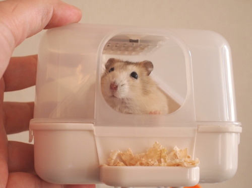 使用している ルックルックのケージには2階がついていてこのスペースがなかなか便利です。簡単に外せて、外したスペースから エサ皿のこうかんやトイレの砂などの交換ができます。さらに 外した2階部分も 出入り口をふたすることができるのでミニミニケージとして使えるのです~ハムちゃんを飼いはじめて、まだ2週間なもので他のケージも使ったことないのですが、ここはよく考えられてるな と思いました。掃除の時にここで待っていてもらえるのでらくちんです。うちのハムちゃんは外に出ようと、しきりに穴を掘るようなしぐさをしているので少しかわいそうなのですが…また、透明なので ハムちゃんの様子を裏から観察することもできます。体調のチェックも、まだ手乗りしないうちのような子も楽にできます。はじめは2階スペースは、ケージを噛ませないようにヒマワリの種を与えるための場所でしたが、ティッシュを裂いて入れてあげたところ快適になったのか たまに昼寝をしたりしています。(ティッシュを使うことには賛否両論あるようですが…今のところ口に入れたりはしていないようなので使っています。)おうちに行きつくまでに 眠くて寝てしまうことも…にほんブログ村