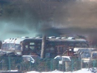 ブーム(?)に乗って、廃車体を撮ってみました。(諸事情により、周辺を加工させていただきました。)かなり離れたところから撮ったものをギリギリまで拡大しましたので、ちょっと見難いかも知れませんが、ご了承ください。一応、南部バスだということは完璧に伝わりますよね?見た感じでは、若干短尺のような気もします。前面の方向幕窓が二つに分かれているようですから、中古車だったのかもしれませんね。隣には、こんなのもあります。お客を運べなくなったバスの、第2の人生でした。